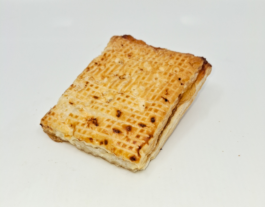 Apfelmarmelade 35% (Zucker, Apfelmark 32%, Geliermittel (Apfelpektin), Säuerungsmittel (Zitronensäure), Säureregulator (Natriumcitrat), Konservierungsstoff (Kaliumsorbat), Festigungsmittel (Calciumcitrat), Sonnenblumenöl, Apfelaroma, WEIZENMEHL IPS, Blätterteigmargarine (Rapsöl, Rapsöl (gehärtet), Wasser, Kokosfett, eingesottene BUTTER (8.2%), Kakaobutter, Emulgatoren (E471, E475), Speisesalz, Säuerungsmittel (Zitronensäure), Aroma), Schwander Wasser, (Grander), Kristall Natursalz