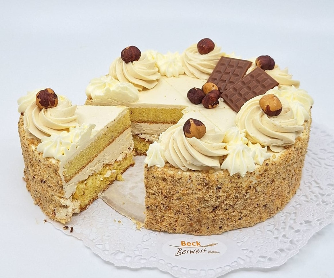 Nussig, cremig, unwiderstehlich – die Haselnuss-Buttercreme-Torte ist ein Genussmoment der Extraklasse, verfeinert mit besten Zutaten.